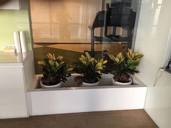 前臺是一家中心的門面,所以擺放的植物要求具一定的檔次。可以選擇在前臺側邊位置擺放一些枝葉比較茂盛的品種,寓意中心蓬勃生機。中心臺面可以選擇擺放一盆紅掌、粉掌或蝴蝶蘭盆栽,這幾類植物都是時令花卉,鮮花比較醒目給人感覺比較紅火。